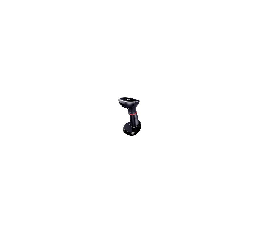 LECTOR DE CODIGOS DE BARRAS GHIA GSW2 / INALAMBRICO / 2D / LED ROJO Y BLANCO / BLUETOOTH / USB / BASE DE CARGA / QR / NEGRO